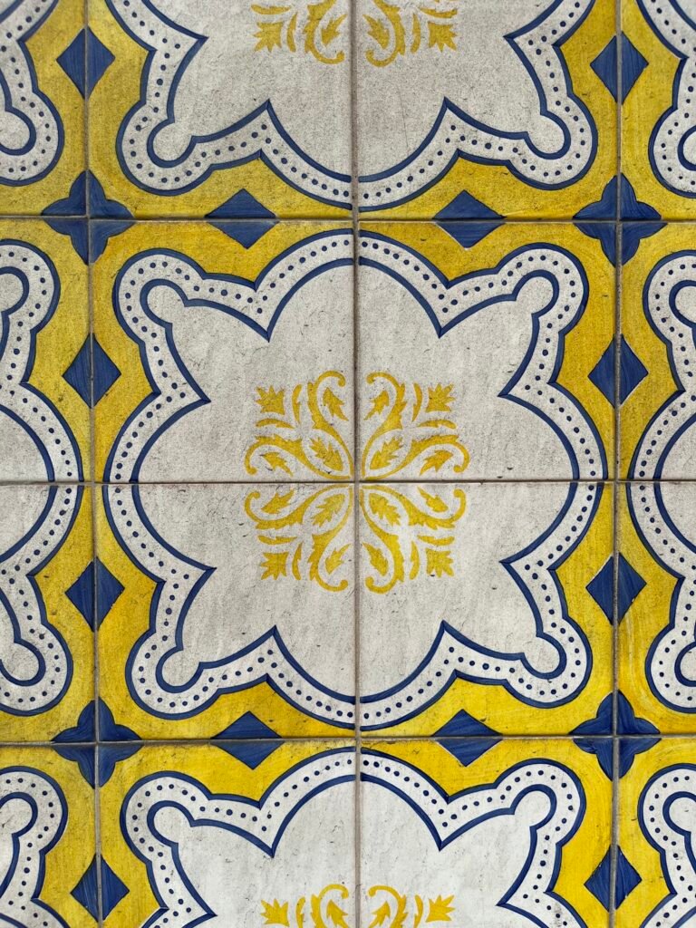 Azulejos didn’t originate in Portugal. Their story begins in the Islamic world, where artisans mastered the art of glazed ceramics to create dazzling geometric patterns for mosques and palaces. The word “azulejo” itself comes from the Arabic “al-zillīj”, meaning “polished stone.”